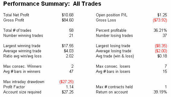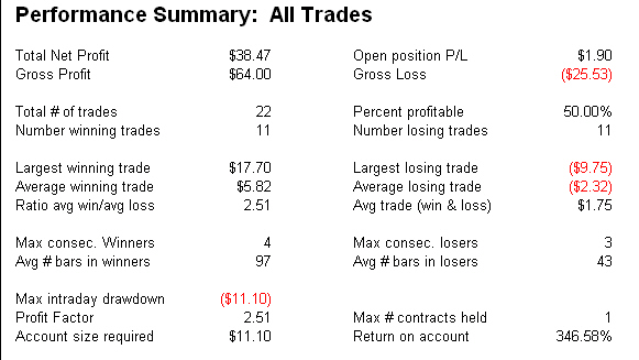 更改帶狀上限和下限的數值,可得較好的結果,獲利:38.47